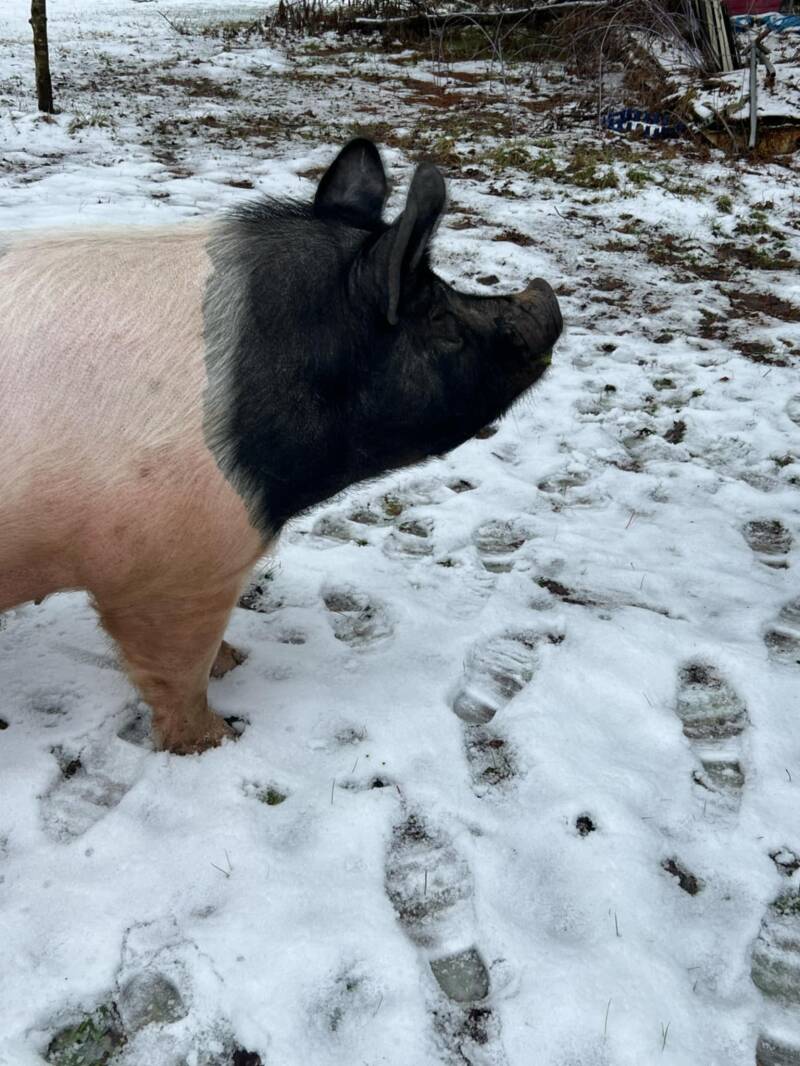 Half & Half is a prime example of the exceptional quality and care we provide to all our pigs at the farm. We take pride in raising healthy and happy animals that bring joy to our customers and visitors.